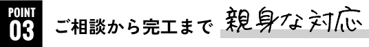 ですが当方では、ご相談から施工・お引渡しまでを代表が一貫して親身に対応。そのため、お客様からヒアリングしたご要望や打合せでのご提案内容も、しっかりと実現いたします。